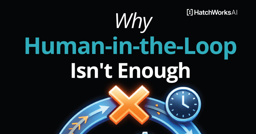 Neither answer scales. "Human-in-the-loop" is a principle, not a process. It doesn't tell you where in the loop the human sits, what they're deciding, what authority they have to override, or what AI and agents they have alongside them to review at AI speed. Without those answers, the human is either a bottleneck or a bystander.